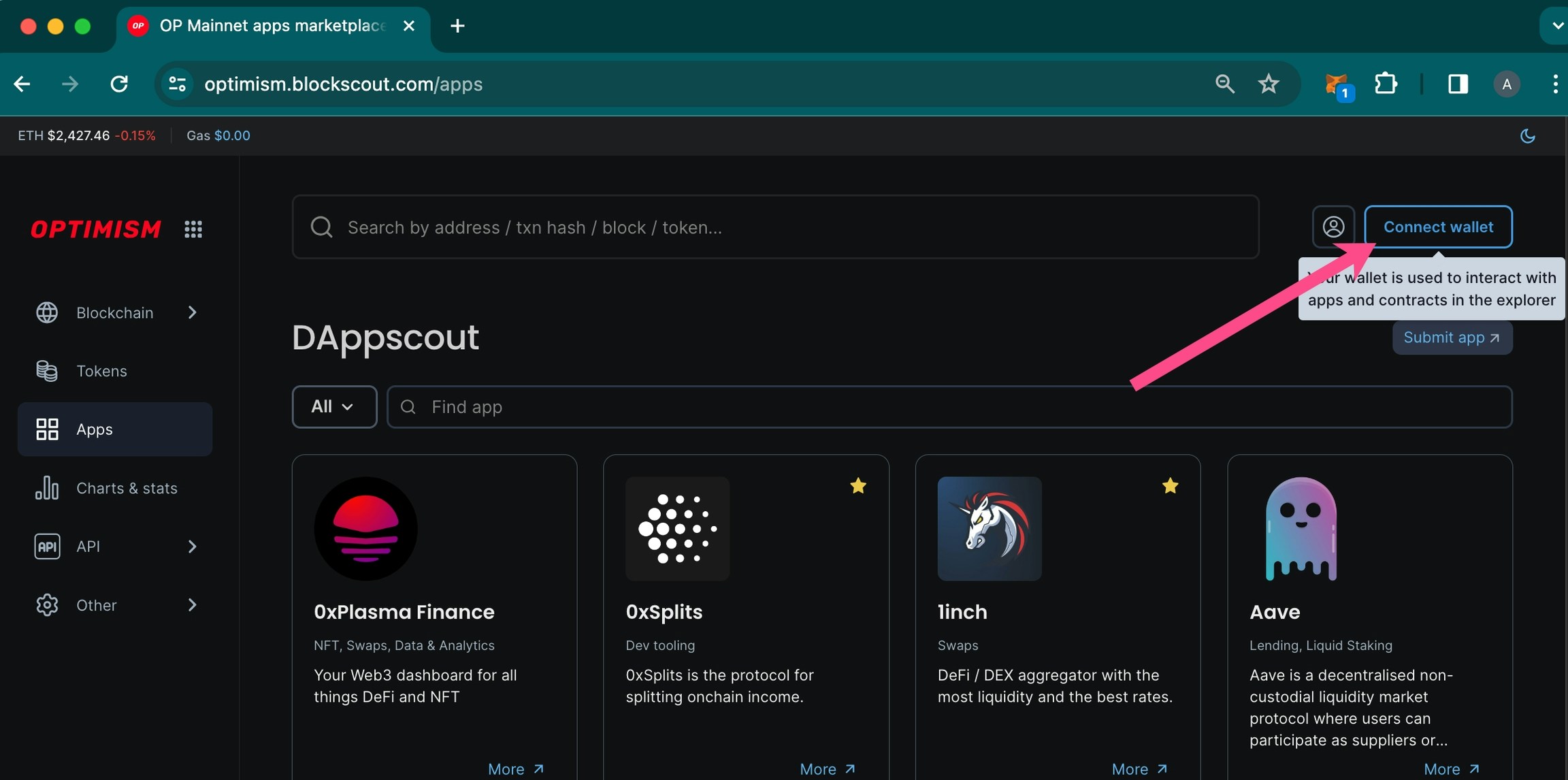Dapps are either embedded into the interface directly (like this Uniswap example) or added as 3rd party links. When embedded, a user can connect their web3 wallet once to Blockscout, then use it with all of the supported Dapps. This saves time and makes for a seamless user experience when switching between multiple applications.